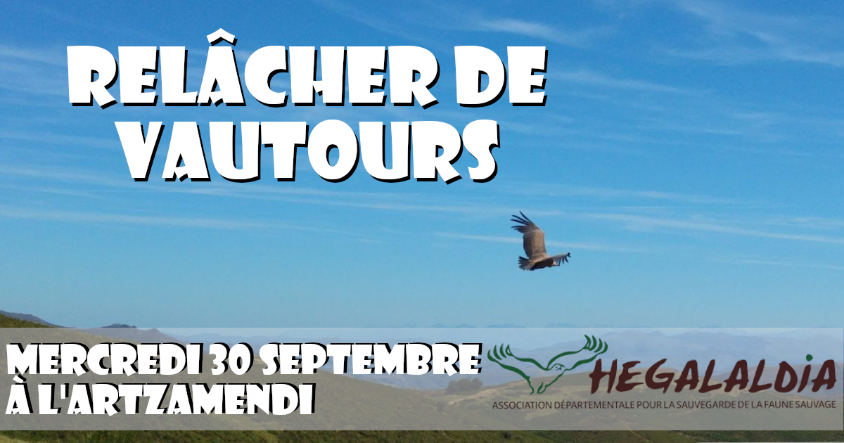 Nous vous proposons d’assister à la remise en liberté de plusieurs Vautours fauves ce mercredi 30 Septembre au col de Méhatché près de l’Artzamendi ! Ce sera le dernier relâcher groupé de la saison donc ne ratez pas l’opportunité de voir ces géants du ciel de plus près et de nous rencontrer !