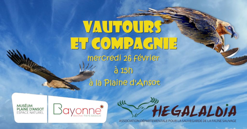 Mercredi 26 février 2020, nous serons présents à la Plaine d’Ansot à Bayonne pour une animation sur le thème des rapaces nécrophages.