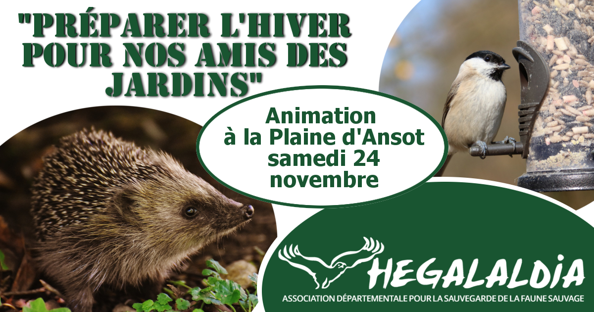 Samedi 24 novembre 2019, nous serons présents à la Plaine d’Ansot à Bayonne pour une animation sur le thème des animaux du jardin.