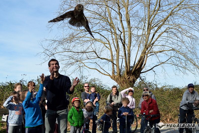 Mikel relâche une chouette hulotte lors d’une animation en basque à la plaine d’ansot.