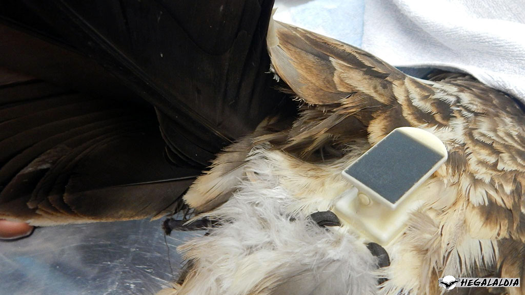 Ce jeune est muni d’une bague muséum de Madrid : a-t-il été bagué au nid ? A-t-il été récupéré par un Centre de soin ? Les soigneurs d’Hegalaldia doivent connaître son passé pour comprendre pourquoi ce voyage a été raté. Nous estimons son âge à 2-3 ans. Il est donc censé avoir déjà migré une fois dans sa vie.