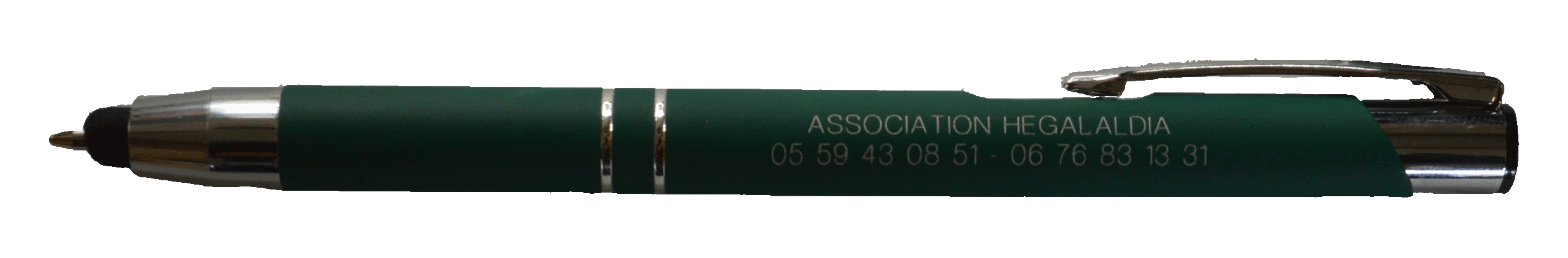 4 € – Stylo à encre noire avec les contacts de l’association