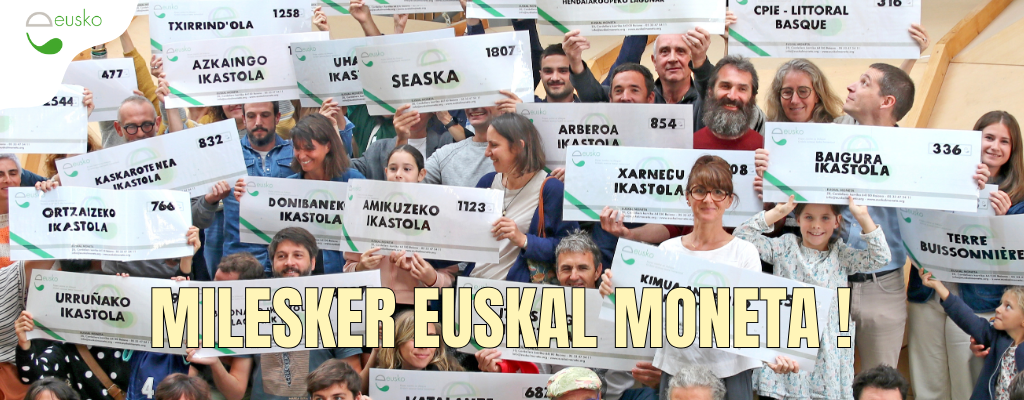 Pour ceux qui l’ignorent, et/ou qui ne l’utilisent pas encore, l’Eusko est une monnaie locale et solidaire qui milite pour un pays basque plus écologique, plus bascophone et pour une économie plus locale. En adhérant à l’Eusko vous choisissez également une association locale que vous souhaitez parrainer, et c’est notamment grâce à ces parrainages que les associations peuvent chaque année percevoir leur « Don 3% » !