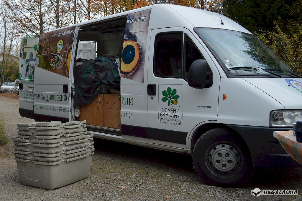 Les vautours ont bien été pucés et contrôlés dans les règles de l’art par notre vétérinaire sanitaire Sophie De Buzon de la clinique vétérinaire de St-Pée-sur-Nivelle. Suite à quoi nos amis bulgares de la FWFF étaient prêts pour effectuer le déplacement avec l’aide de Green Balkans (autre organisation qui effectue de la réintroduction de rapaces nécrophages en Bulgarie), mais aussi grâce à la fondation du Bioparc de Douée-La-Fontaine qui a financé le voyage.