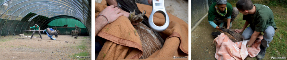 Capture des vautours, vérification des puces et manipulation d’un vautour
