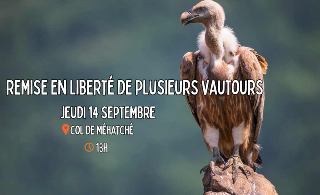 Ce jeudi 14 septembre, rendez vous au col de Méhatché ( Artzamendi ) pour la remise en liberté de plusieurs Vautours fauves.