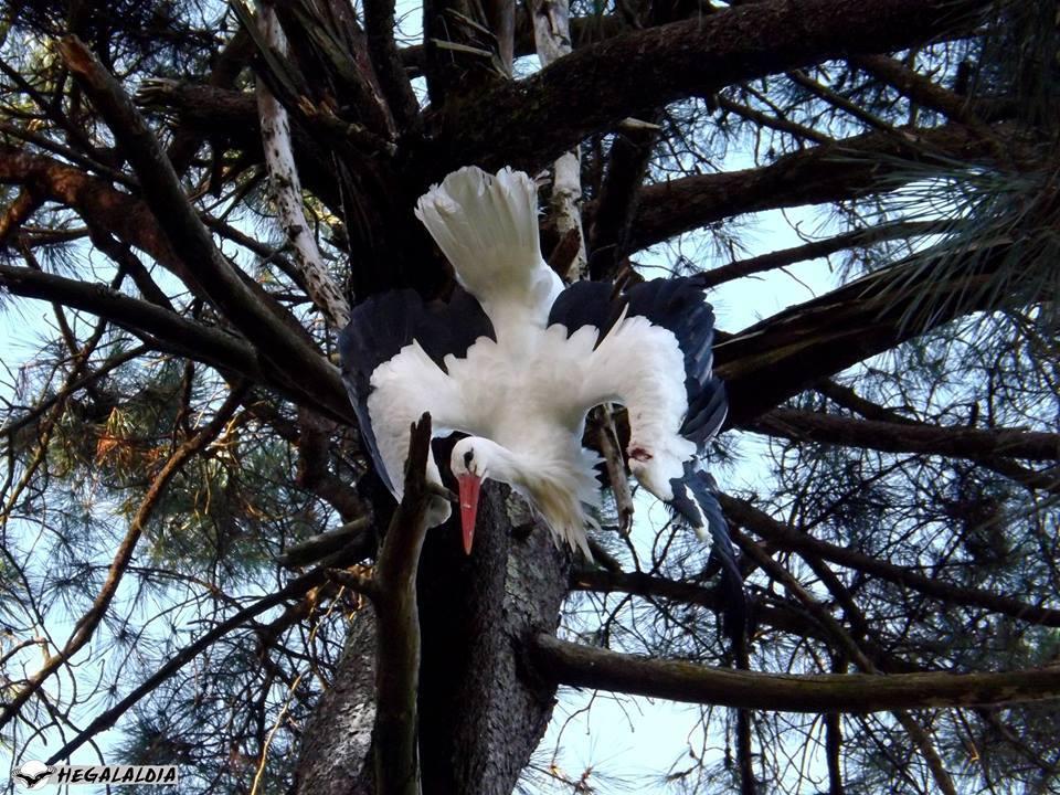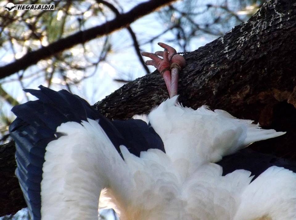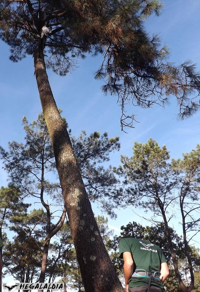 Un Monsieur appelle Hegalaldia : en promenant son chien sur le parcours santé d’Ahetze (64), il a vu une cigogne en détresse. En effet, celle-ci est pendue par les pattes à environ douze mètres de hauteur : en haut d’un pin. Il nous explique également que c’est une zone où plusieurs dizaines de cigognes viennent dormir chaque soir. Le spot parfait pour des cigognes, car étant à proximité d’une décharge, elles y passent leurs journées a rechercher des mets… pas très raffinés.