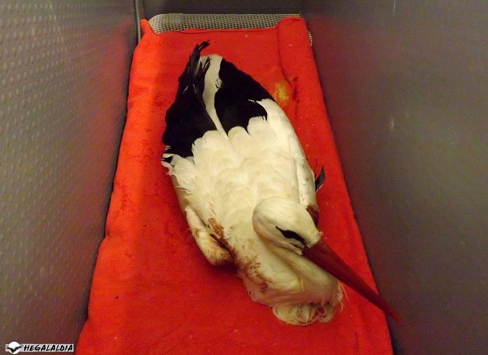 La cigogne s’est donc retrouvée la tête en bas au moment de s’envoler le matin, vers 7h… il y a plus de 5 heures.