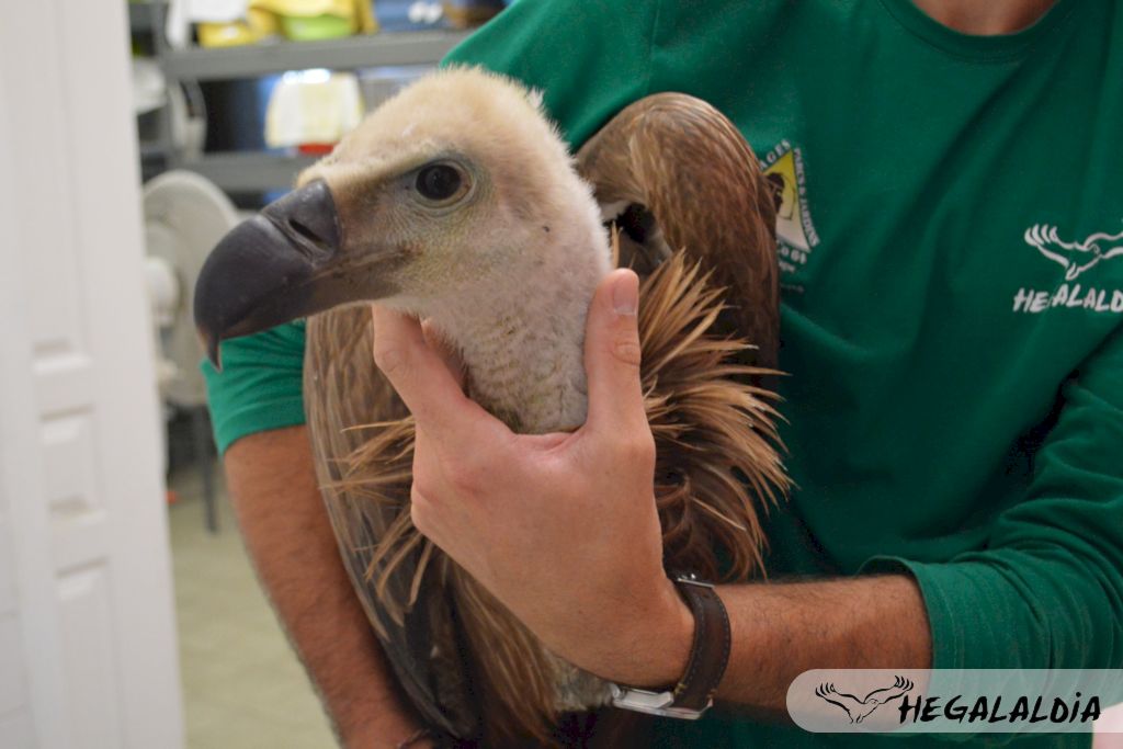 Eh oui car c’est là qu’intervient Hegalaldia. Car tout ne se passe pas toujours au mieux, et il arrive que certains jeunes ratent leur premier envol et privilégient l’atterrissage en catastrophe. Pas de panique, cela peut arriver. Le jeune n’aura alors qu’à retrouver un point haut grâce à ses pattes musclées pour se ré-envoler. Malheureusement pour lui, ses grandes ailes manquent encore un peu de muscles pour lui permettre de redécoller du sol, alors il arrive que des fois, les jeunes vautours se retrouvent bloqués sur le plancher des vaches…